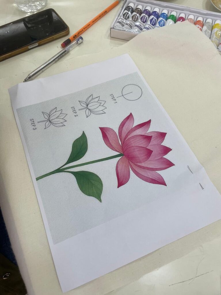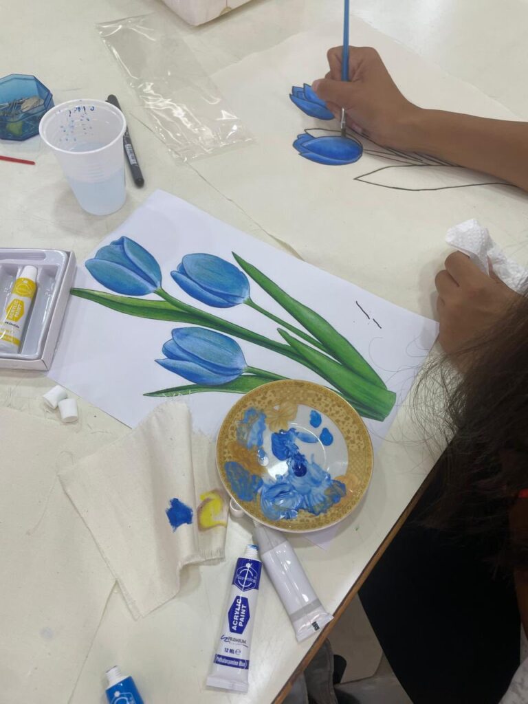 المشاركون يواصلون ابتكار لوحاتهم المميزة، حيث تمتزج الألوان بالأفكار لتنتج أعمالًا فنية تعكس موهبتهم وحبهم للفن ![]()
